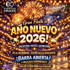 Disfruta una noche inolvidable en un ambiente único, junto al mar, y baila con nosotros hasta las 02:00 AM. 🌟 Reserva tu lugar y vive una celebración como ninguna otra en Yachting Hotel Quintero.
